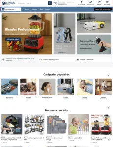 Site e-commerce pour Nougaelectro, spécialisé en équipements électroniques, navigation fluide, design moderne et expérience d’achat optimisée.