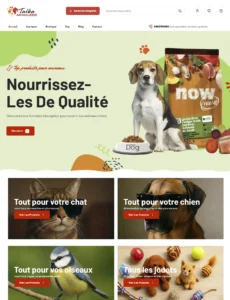 Site e-commerce moderne pour Animalerie Taïba, vitrine claire des produits animaliers avec paiement sécurisé et navigation mobile optimisée.